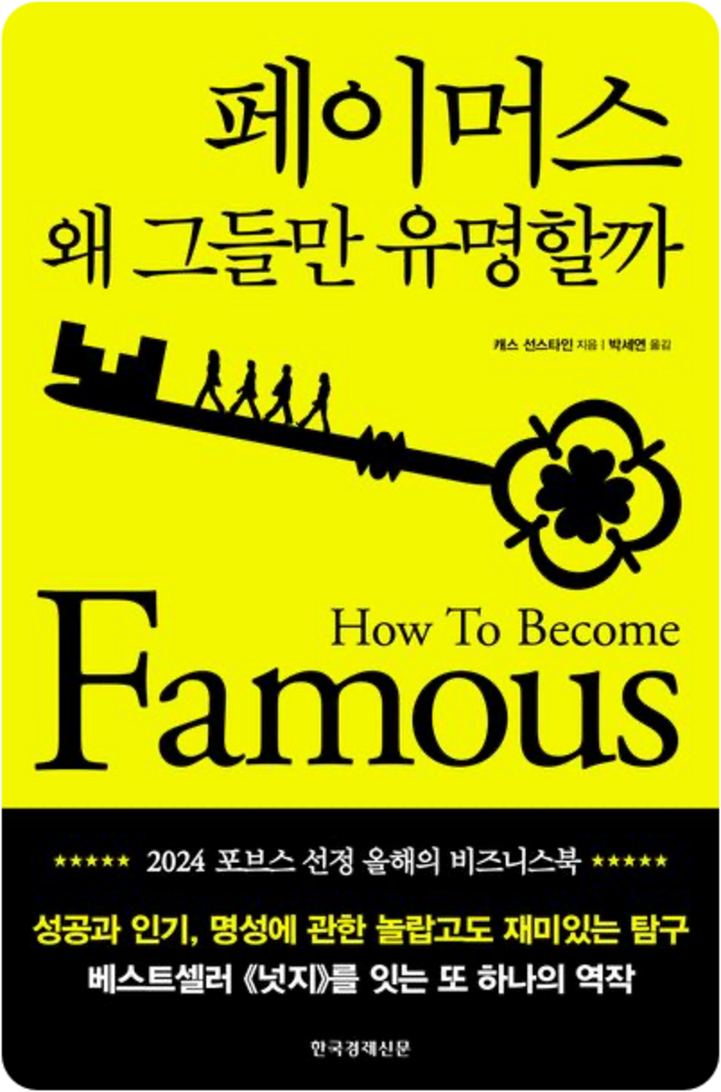 캐스 선스타인은 <넛지>로 유명한 하버드대학교 로스쿨 교수입니다. 혹시 아직도 <넛지>를 읽어보지 못한 분들이라면 꼭 한번 읽어 보시길 권해 드립니다. 행동경제학을 이해하는데 이만한 책도 없습니다. 물론 얼마 전에 작고하신 행동경제학의 대부, 대니얼 카너먼의 <생각에 관한 생각>이야말로 행동경제학의 교과서적인 책이긴 하지만요. 두 책 모두 강추 드립니다. <넛지>의 캐스 선스타인의 <페이머스, 왜 그들만 유명할까> 란 책을 최근에 읽었습니다.