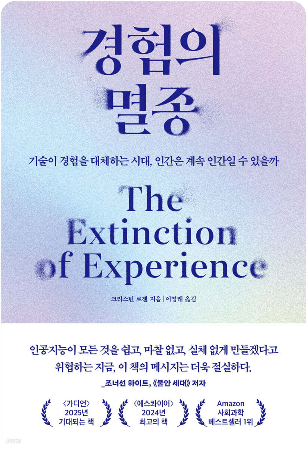 무엇을 인간다움으로 정의할 수 있을지는 사람다 의견이 다를 수는 있겠지만, 변화 속에서도 코어를 잃어버리지 않으려는 노력은 반드시 수반되어야만 합니다. <경험의 멸종>에서 크리스틴 로젠은 이렇게 말하고 있죠.