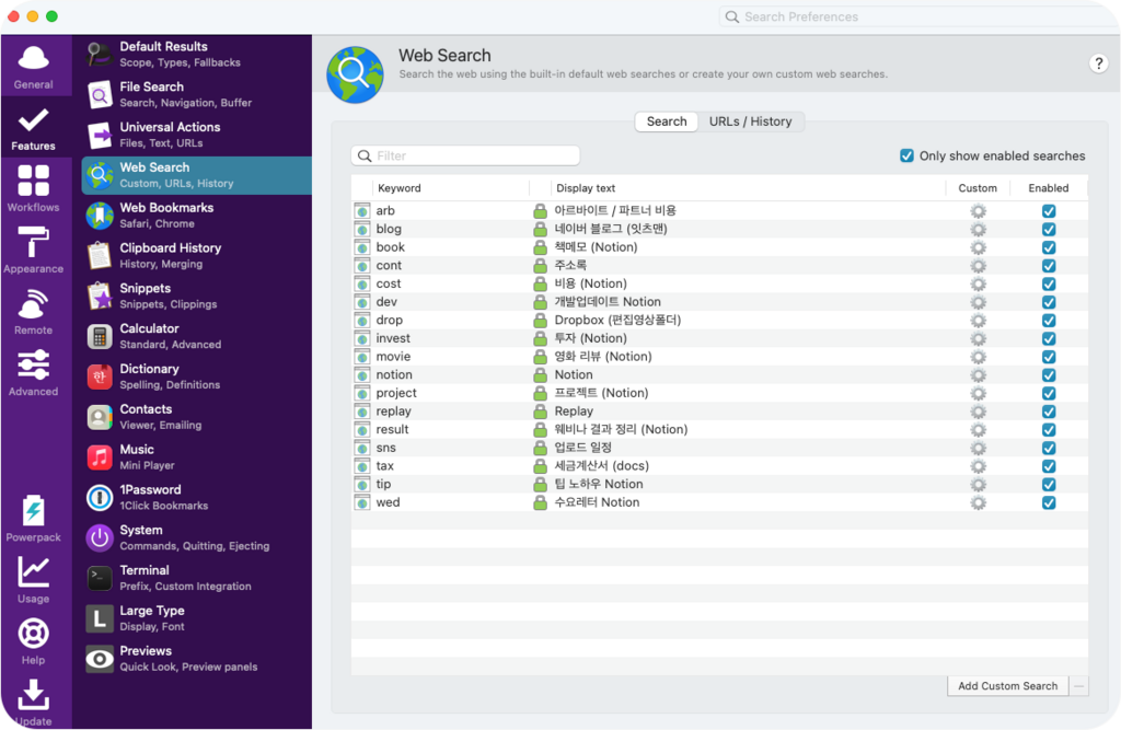 - Alfread는 웹페이지로 바로 가는 단축키 설정 기능도 제공하고 있는데요. 이게 아주 유용합니다. 하루에도 여러번 자주 찾는 페이지나 서비스는 크롬의 즐겨찾기로 고정해서 사용하지만, 가끔 찾아가는 링크들은 검색창으로 직접 찾아 들어가거나 해당 웹서비스를 열고 해당 위치까지 찾아서 들어가야만 합니다. 하지만 Alfread를 이용하면 원하는 그 링크로 바로 갈 수 있죠. Notion이 앱 버젼도 있지만, 웹 버젼으로도 충분히 활용할 수 있기 때문에 (사실 저는 웹버젼이 훨씬 직관적입니다) 저는 바로 이 기능을 이용합니다.